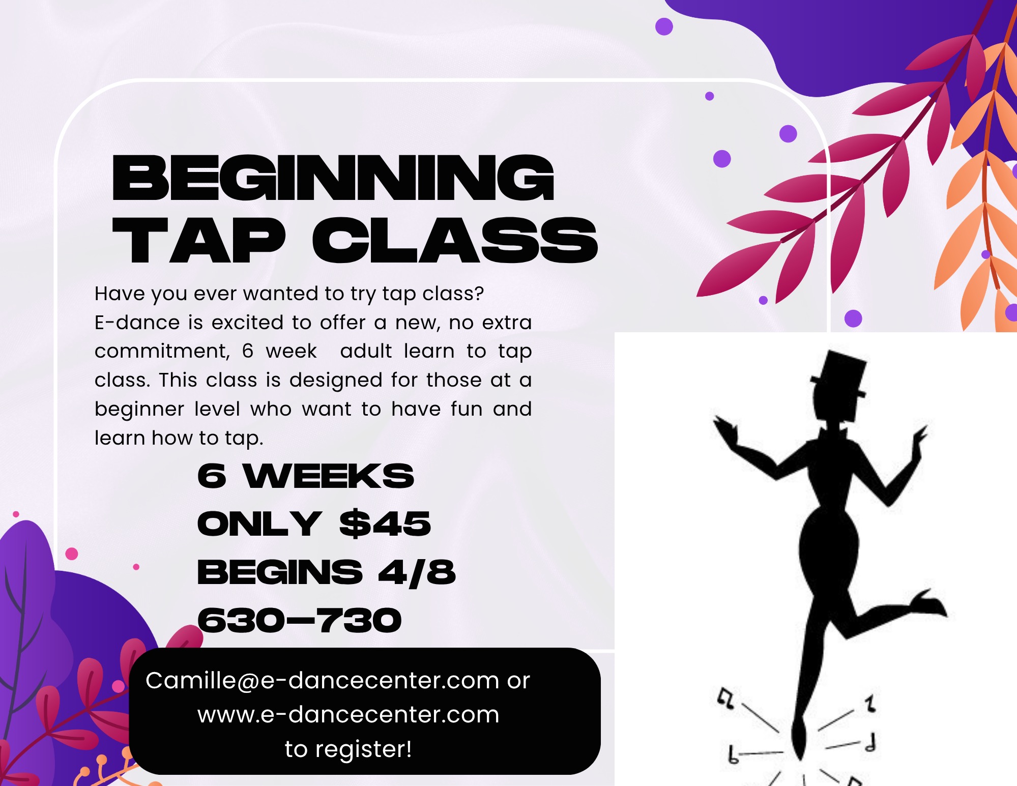 Tap, Broadway Tap, Acro, Clogging, Jazz,